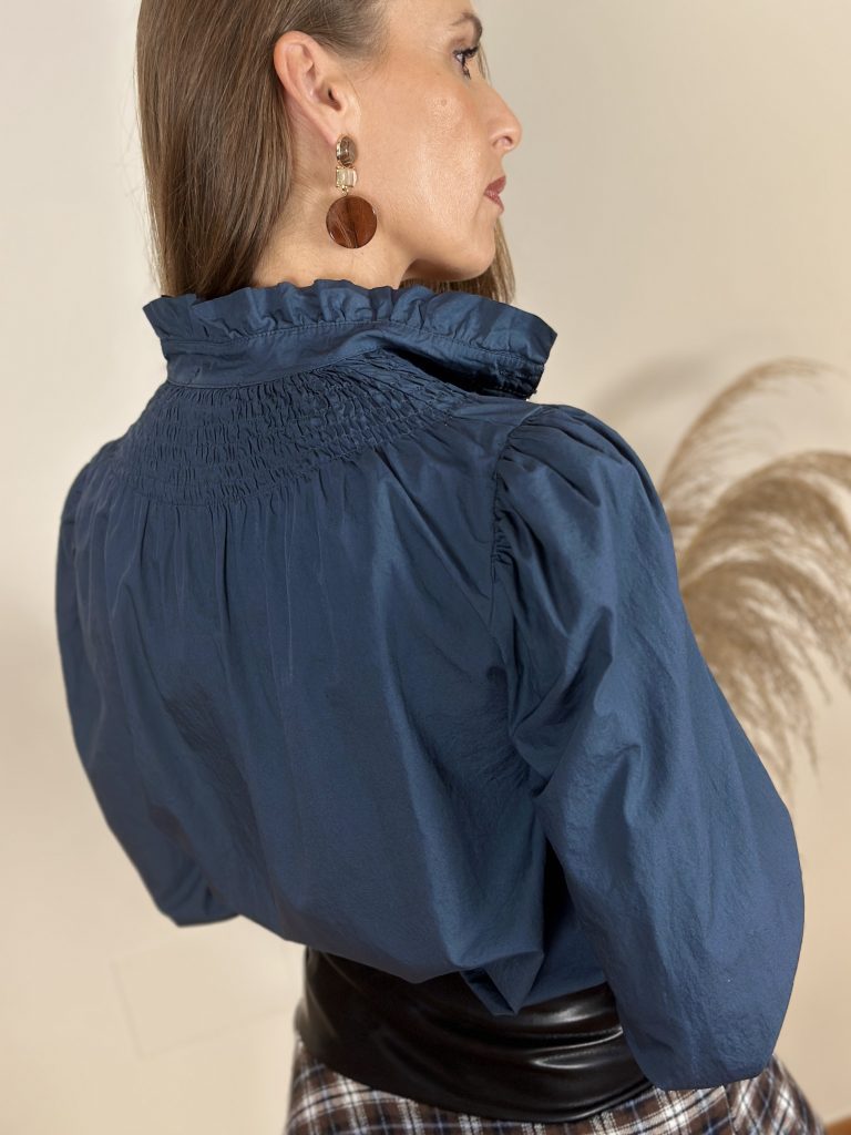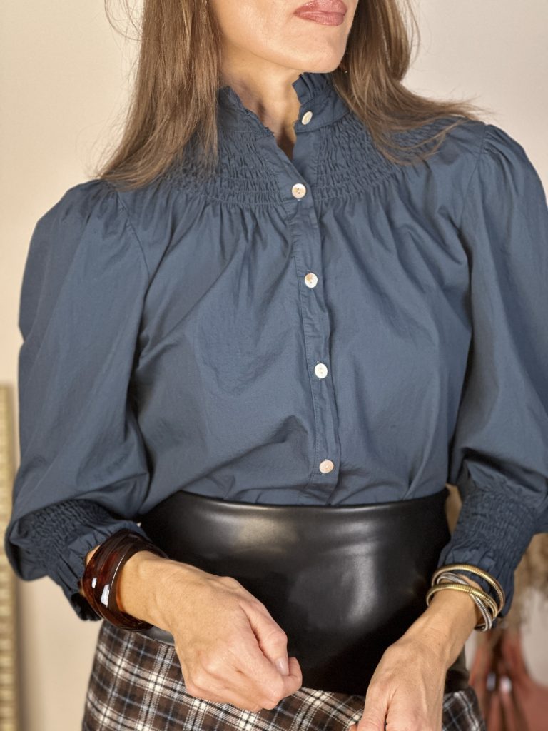 Blusa abotonada con un estilo romántico que combina elegancia y casual. Súper versátil tanto para el día a día en su tejido 100% algodón o para tus looks más sostificados.