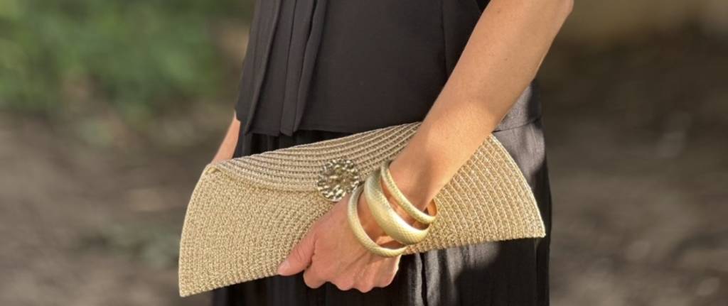 Bolso con interior en polipiel y cierre clip con broche diseño.