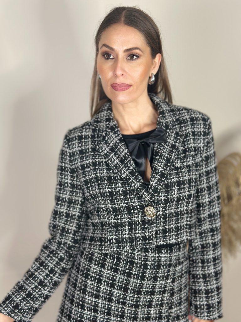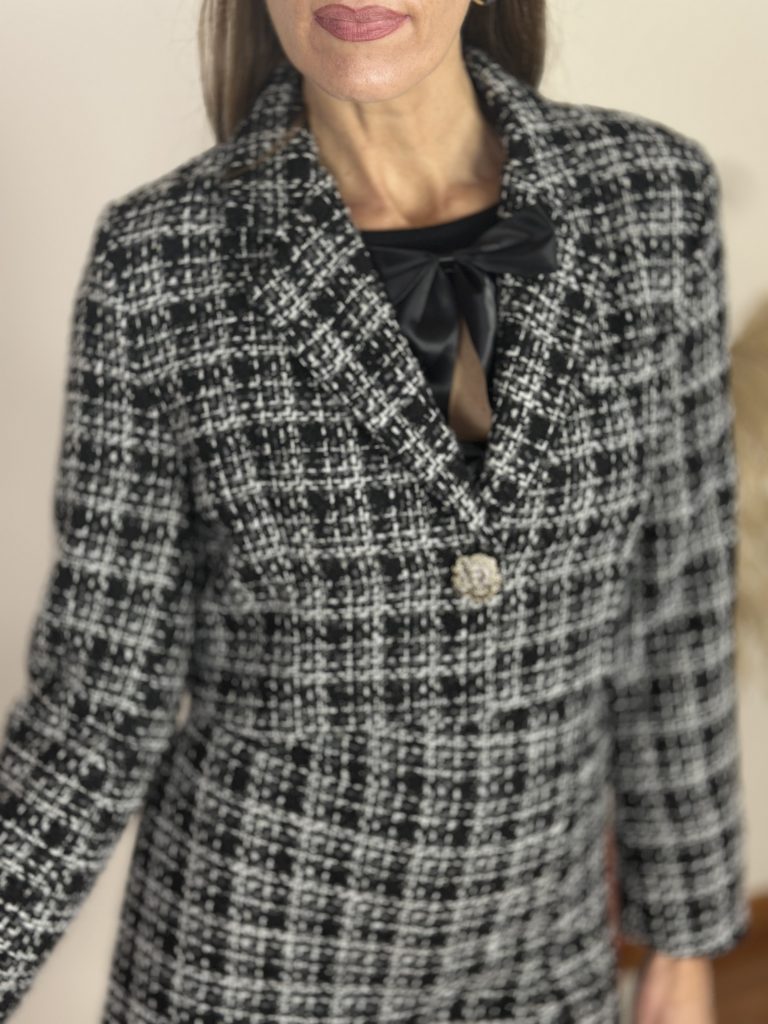 Chaqueta en tejido de paño con cierre con botón de diseño. Totalmente forrada.