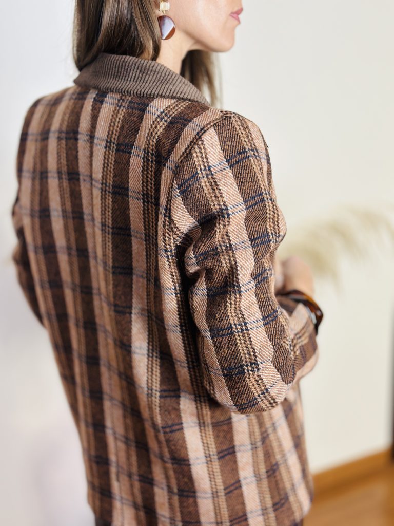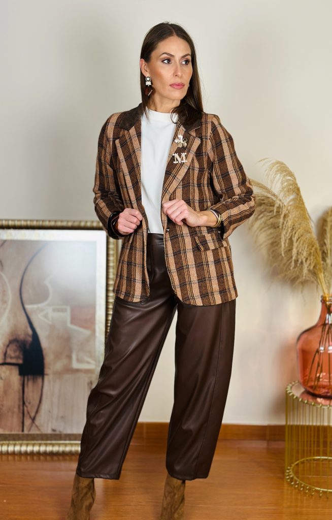 Chaqueta en tejido de paño con detalles de abalorios. Totalmente forrada.Cierre con botón de diseño.
