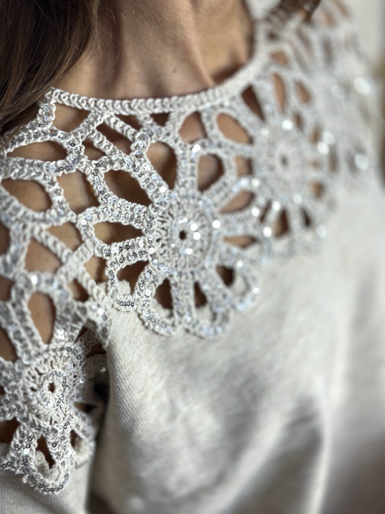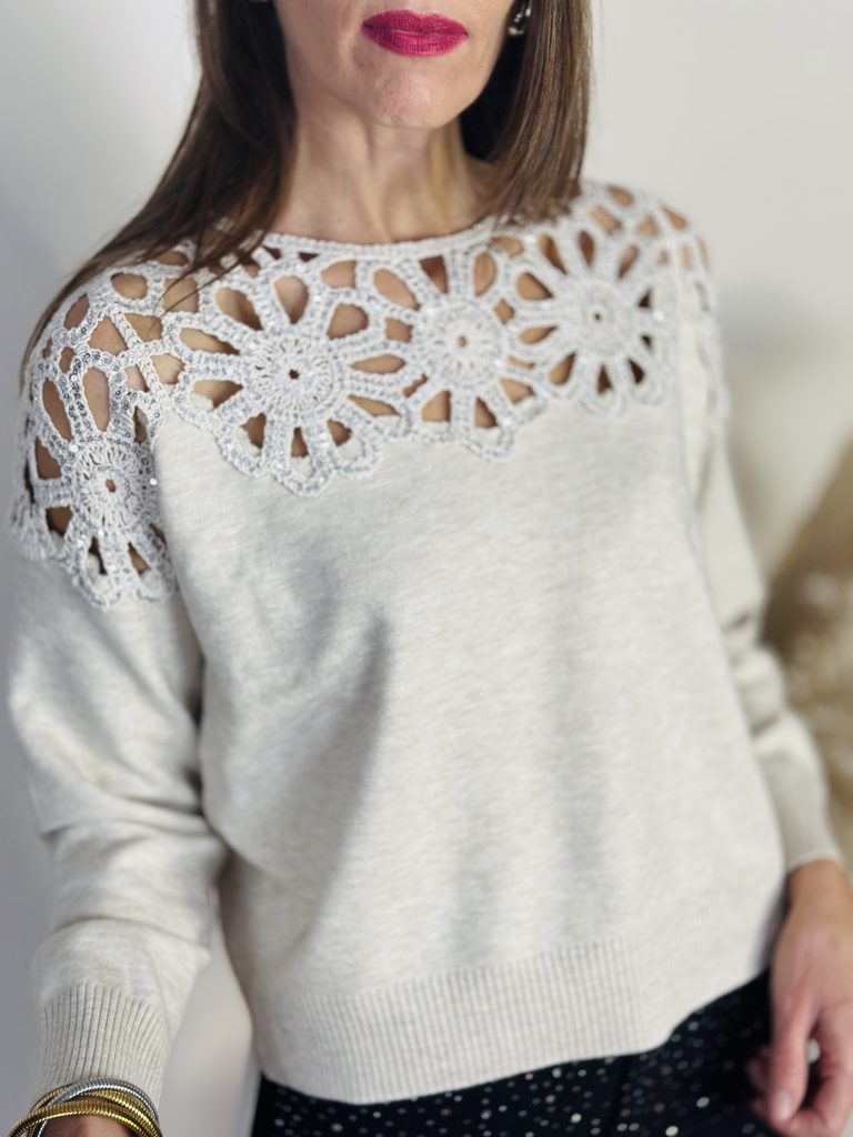 Jersey en tejido de punto súper suave con detalles de flores troqueladas con microlentejuelas.