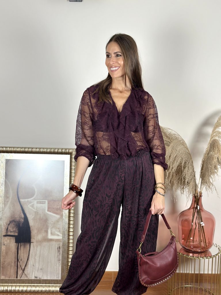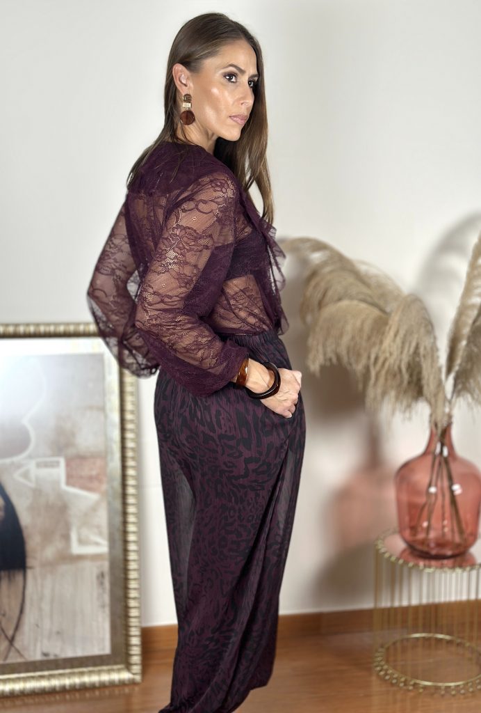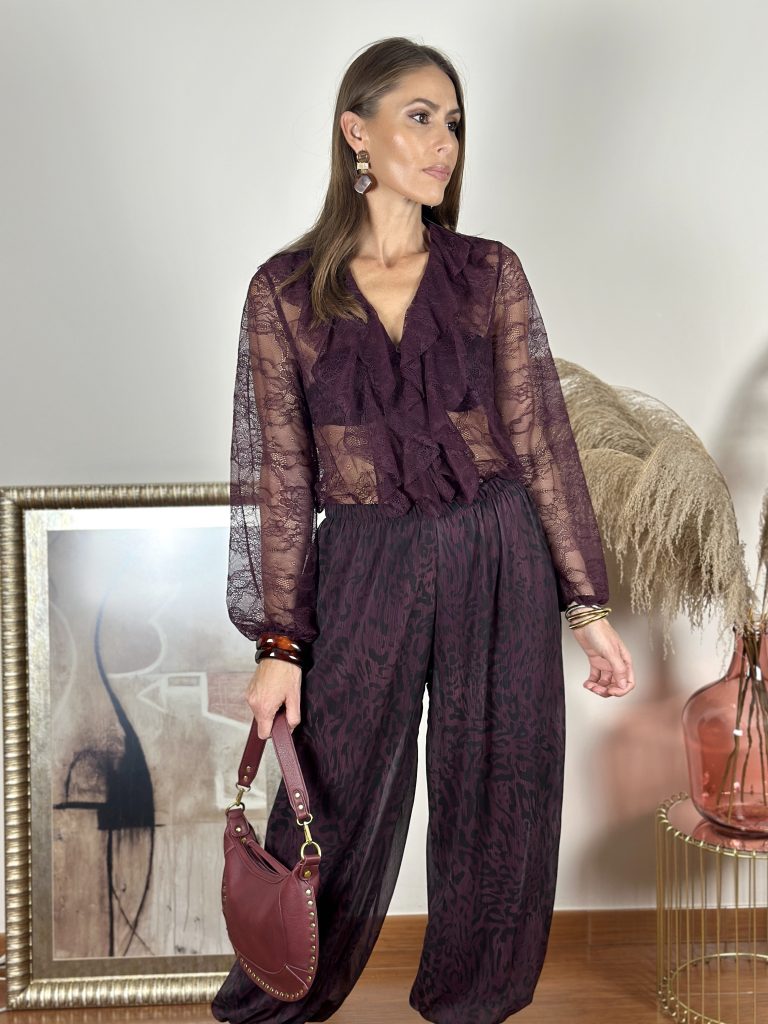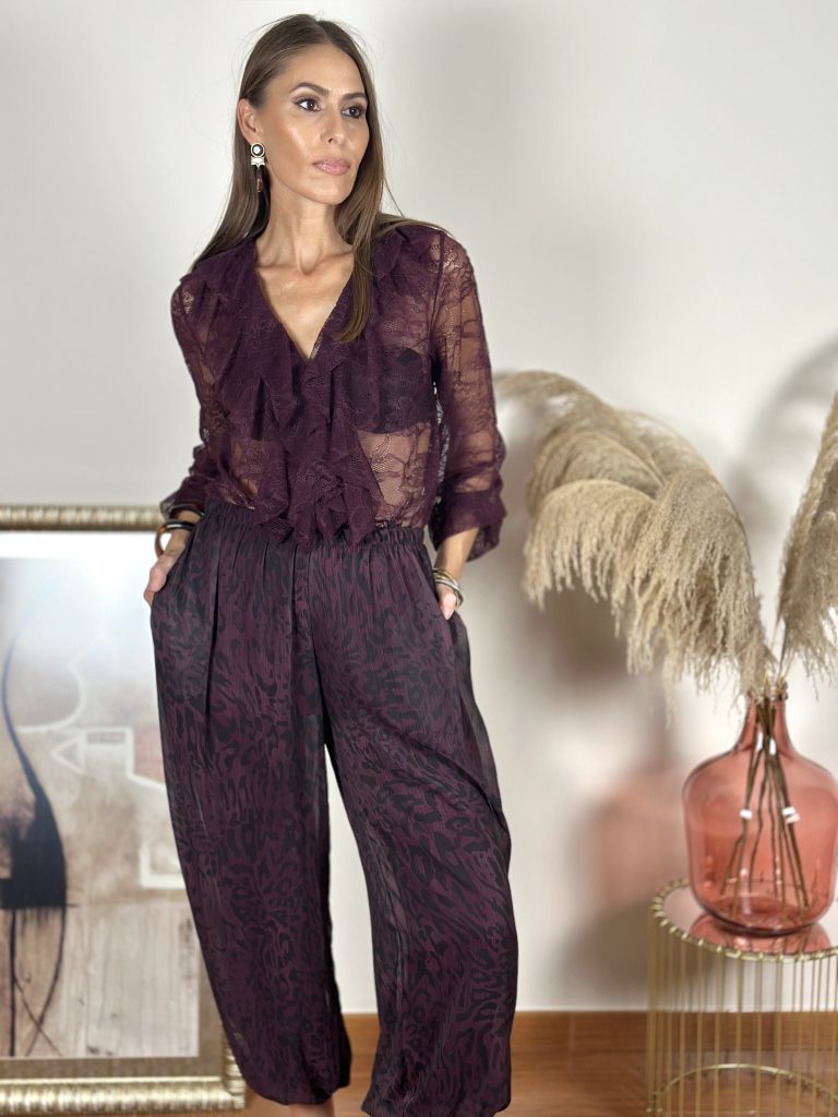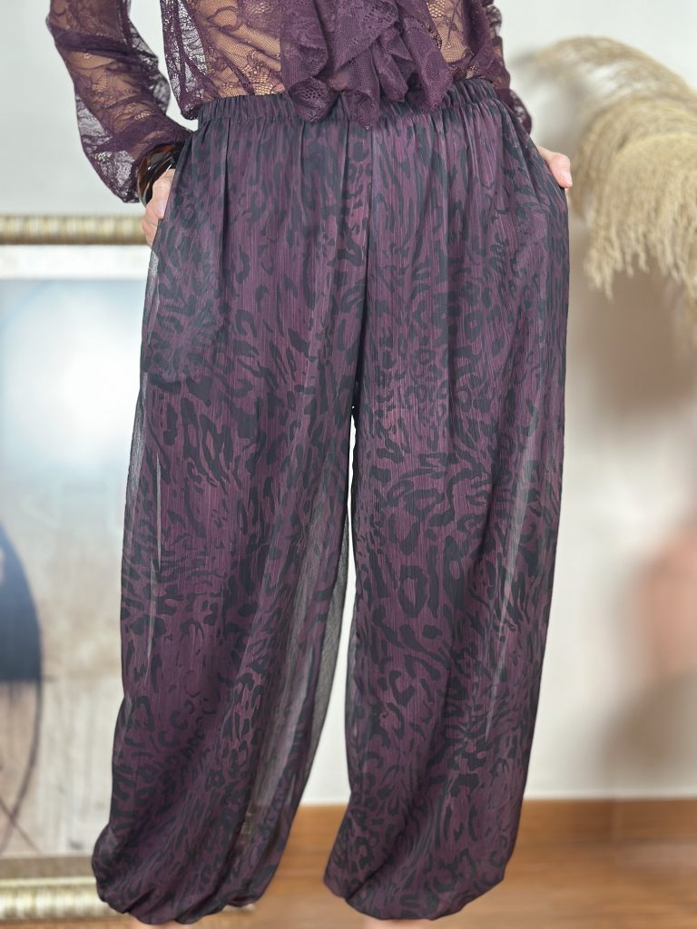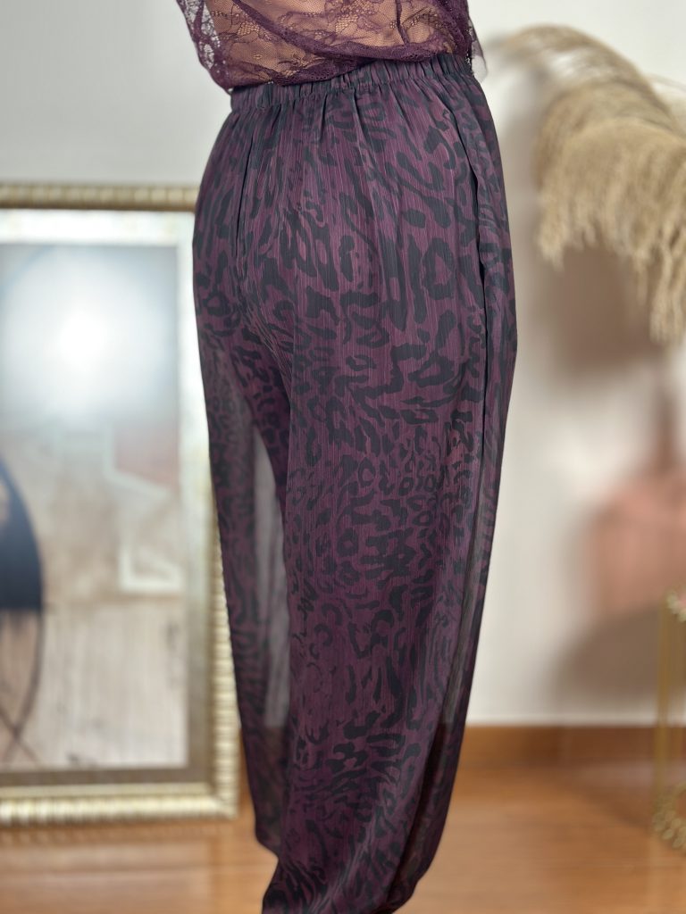 Pantalón Bombacho Animal Print Berenjena