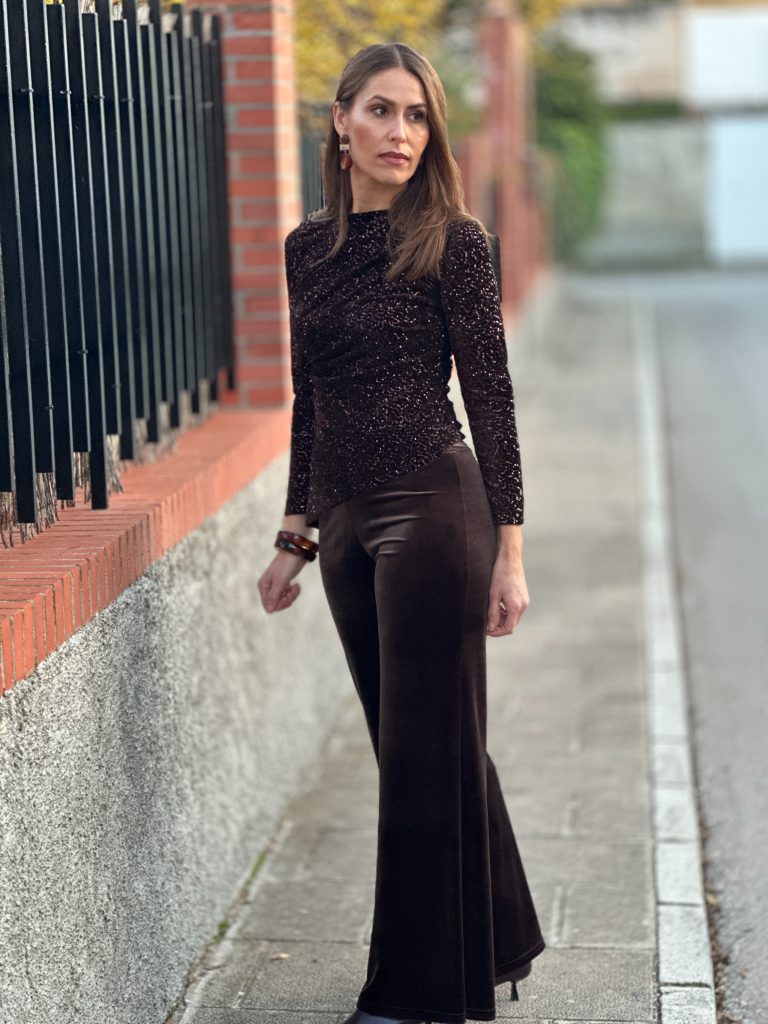 Pantalón Flare Terciopelo Chocolate