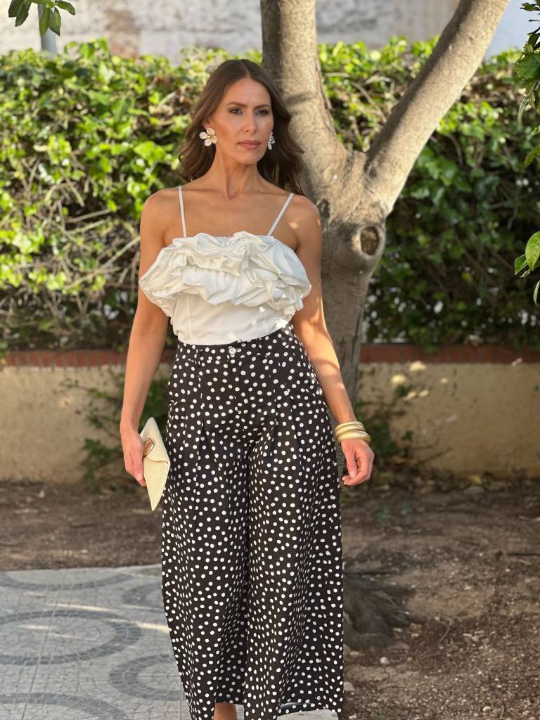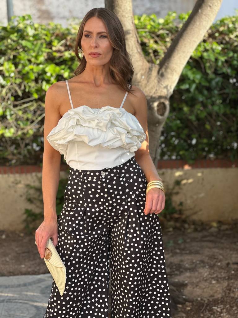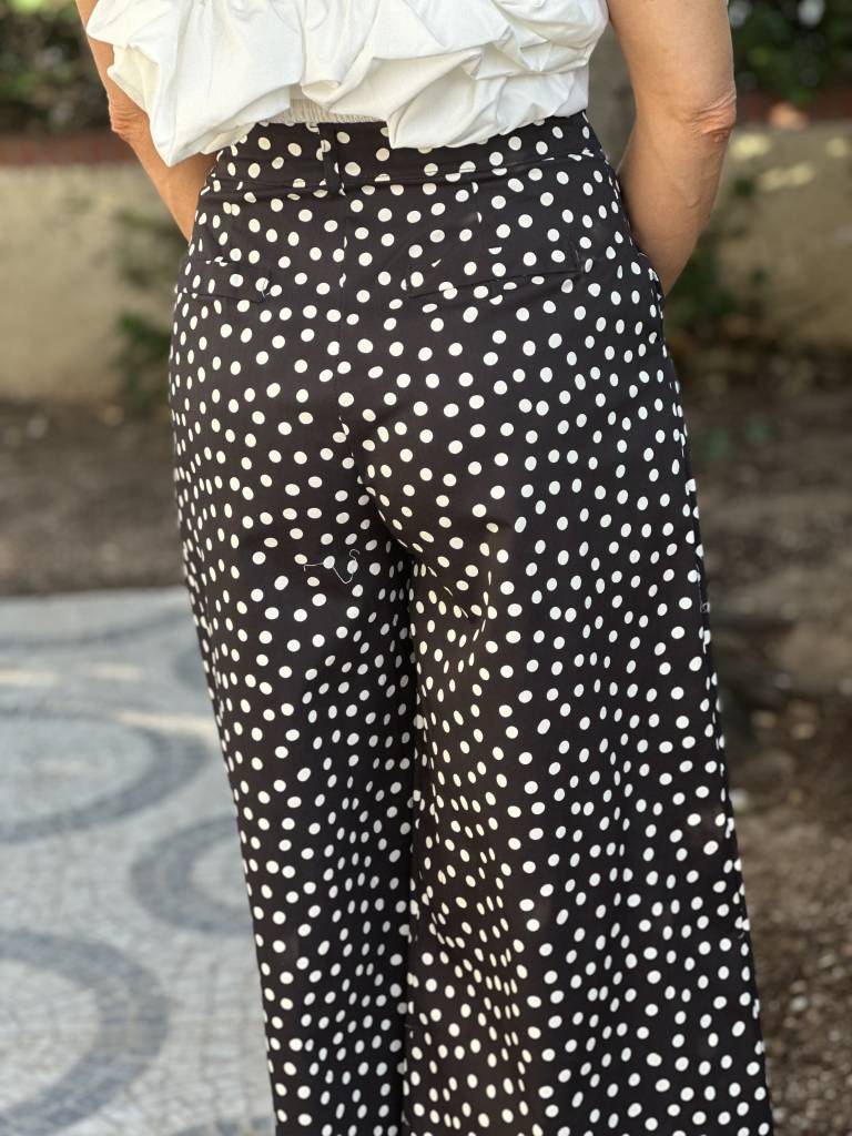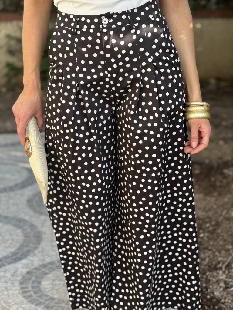 Pantalón palazzo con pinzas delanteras y dos bolsillos laterales.